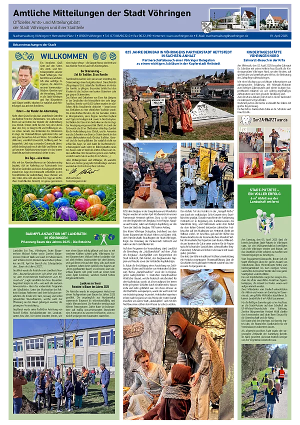 Redaktionsschluss für die Vereinsnachrichten ist spätestens Montag 09:00 Uhr in der Woche der Veröffentlichung! Möglichst per E-Mail an amtsblatt(at)voehringen.de oder über unser Formular.
