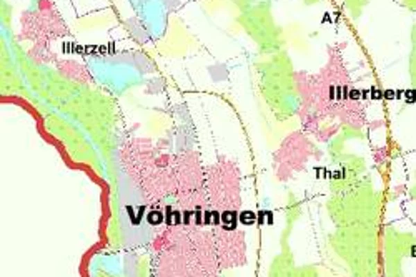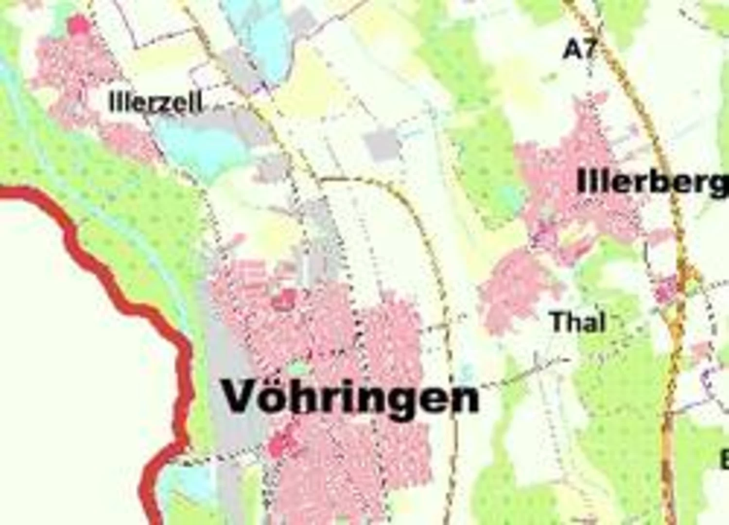 Beispiele für die Ortskarte von Vöhringen und eine detailliertere Ansicht mit POIs: