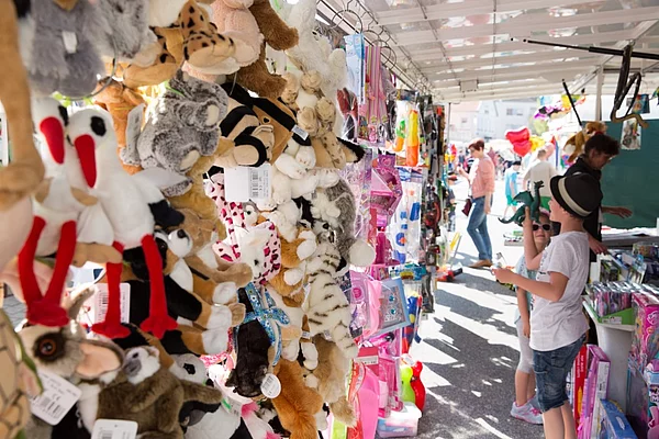 Bunte Luftballons und Spielwaren waren ein Anziehungspunkt für die Kinder.