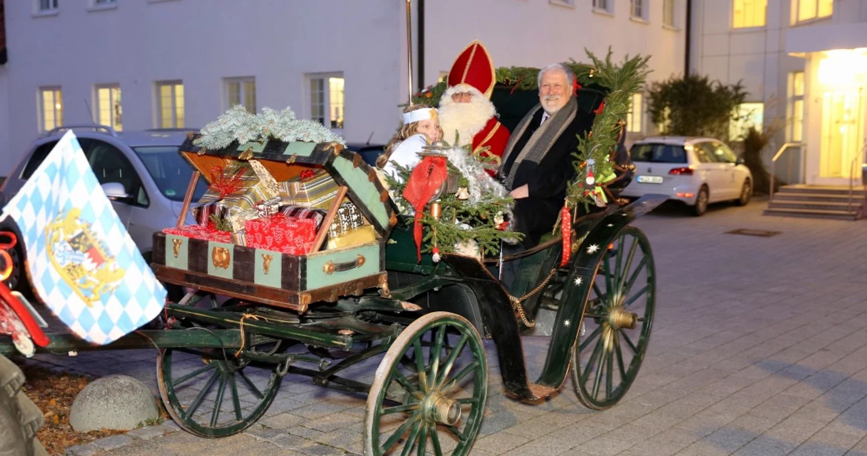 Bürgermeister Karl Janson, der mit dem Adventsengel Annabelle Salzgeber, dem Hl. Nikolaus, Knecht Ruprecht  und 3. Bürgermeister Ludwig Daikeler auf einer wunderschön weihnachtlich geschmückten Kutsche gefahren kam, begrüßte die großen und kleine Gäste und all die vielen Aussteller, darunter auch die Gäste aus der Patenstadt Prad am Stilfserjoch, Südtirol.