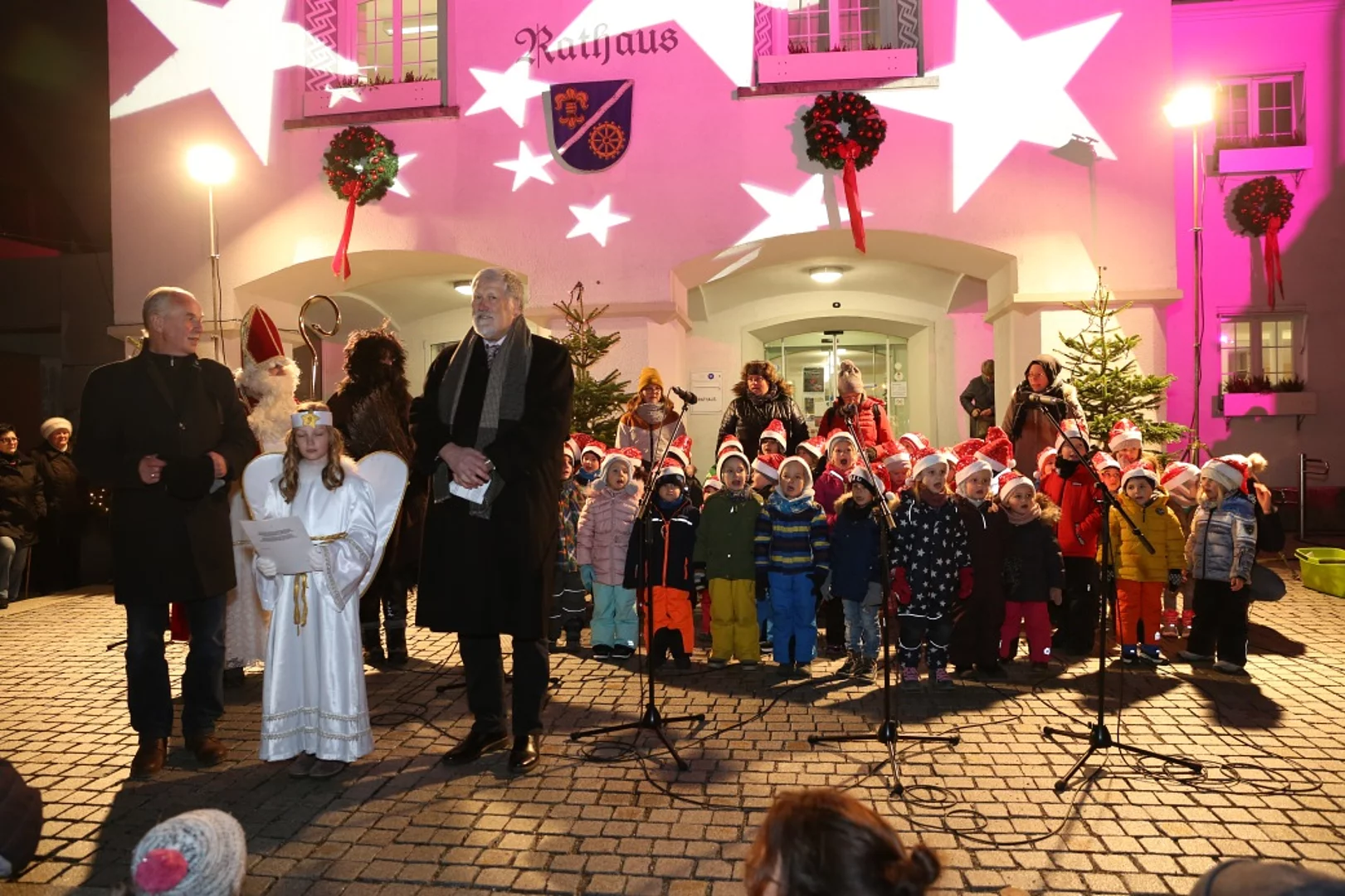 Der Adventsengel Annabelle sprach mit klarer Stimme den traditionellen Adventsprolog, im Anschluss beschenkte der Hl. Nikolaus mit Knecht Ruprecht die vielen Kinder.