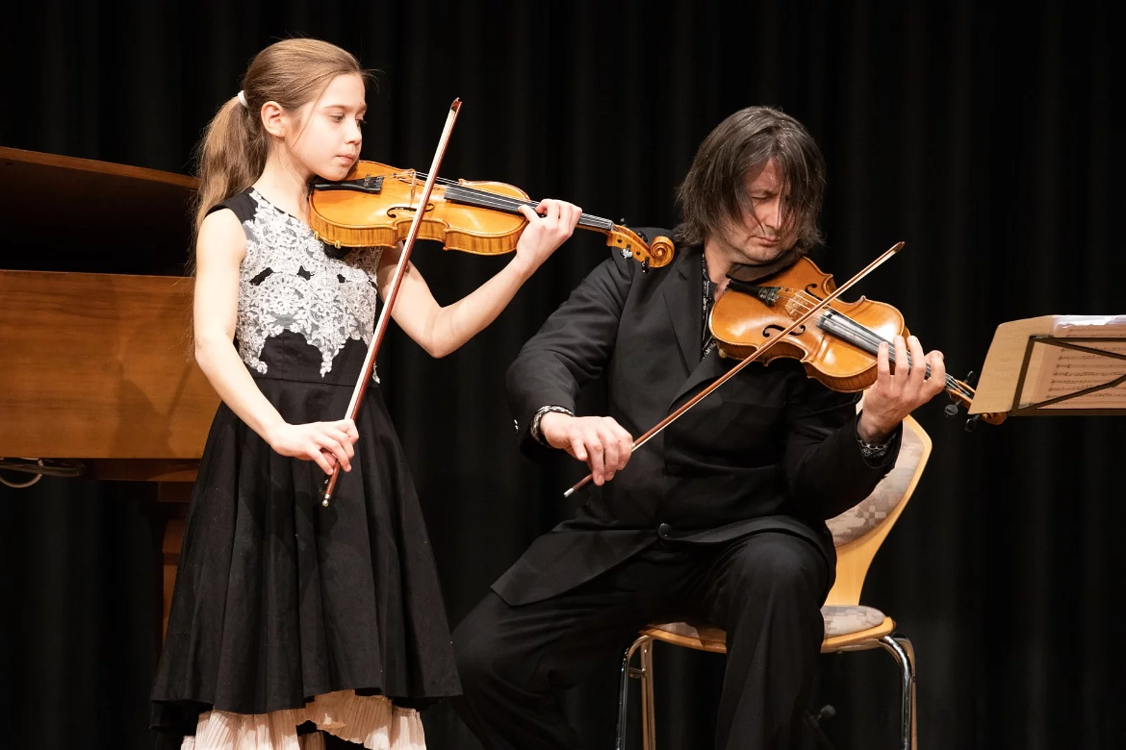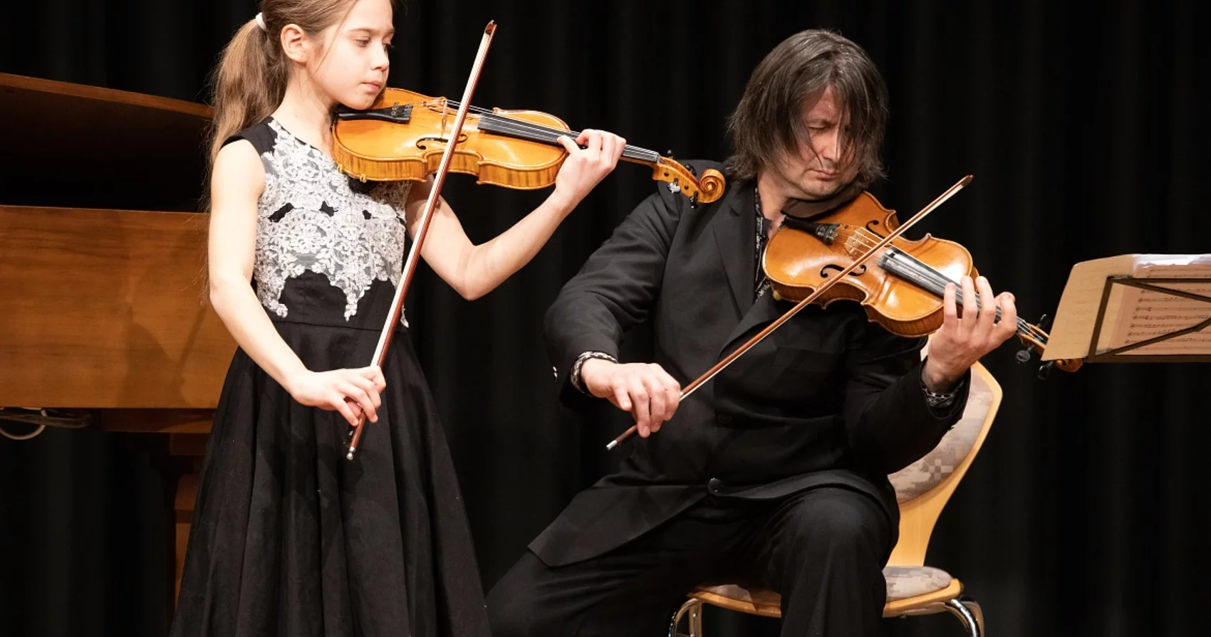 Auch ihre zehn Jahre alte Schwester Sascha stand ihr mit ihrem Instrument Violine, so z.B. beim Ungarischen Tanz Nr. 5 von Johannes Brahms, begleitet von ihrem Vater Alexander Oleksandr Klimas, kaum nach; zwei außergewöhnliche Mädchen mit großer künstlerischer Zukunft.