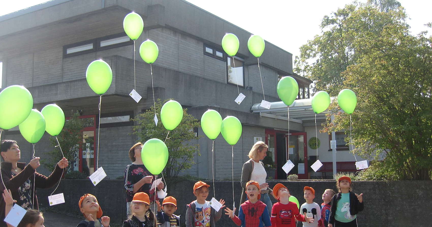 Verziert mit gemalten Bildern der Kinder und dem Namen der jeweiligen Einrichtung machten sich im ganzen Stadtgebiet knapp 600 Luftballone auf den Weg.