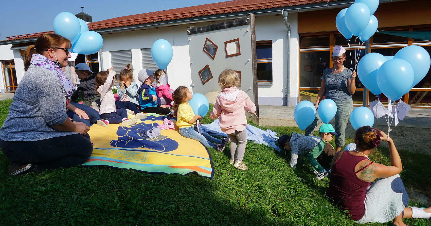 Aufgrund der derzeitigen Situation konnte dieses Datum nicht wie die Jahre zuvor in einer gemeinsamen Veranstaltung mit allen Kindertageseinrichtungen, dem Vöhringer Bürgermeister sowie dem evangelischen Pfarrer vor dem Vöhringer Kulturzentrum gefeiert werden. So ließen jede der acht Kindertageseinrichtungen in Vöhringen im kleinen Kreis Glockenschlag 11:00 Uhr die Luftballone steigen.
