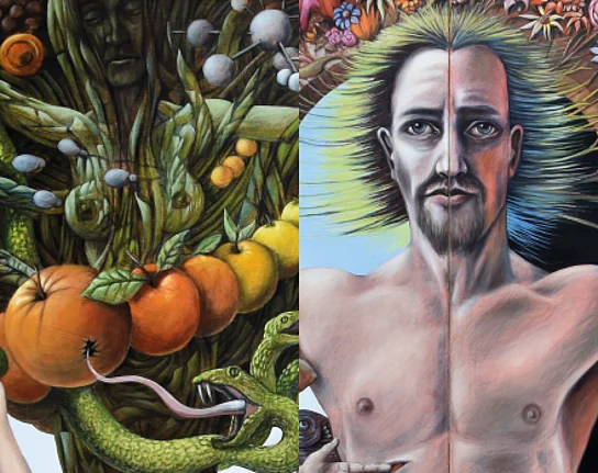 Zwischen 2017 und 2020 malen drei Künstler ein monumentales Bildwerk. Es hat die Gestalt eines mittelalterlichen Flügelaltars, der auf der „Alltagsseite“ die Gottesmutter mit dem Leichnam Christi zeigt. Die „Festtagsseite“ ist hingegen der Erscheinung Christi zum Jüngsten Gericht gewidmet. Entstanden ist damit ein Fest der Malerei, das mit überbordender Erzähllust Grundfragen des christlichen Weltverständnisses