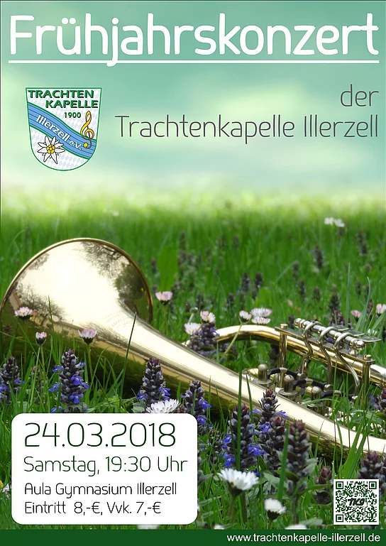 Die Trachtenkapelle Illerzell lädt zum Frühjahrskonzert am Samstag den 24. März 2018 um 19:30 Uhr in der Aula des Illertal-Gymnasiums in Illerzell ein. Unter unserem Dirigenten Roland Tschamler haben wir ein Programm zu bieten, bei dem jeder auf seine Kosten kommt. Wir würden uns sehr freuen, Sie an unserem Konzertabend begrüßen zu dürfen.