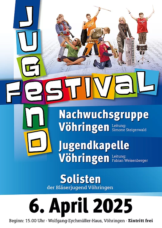 Die Bläserjugend der Stadtkapelle Vöhringen lädt Sie recht herzlich zum Jugendfestival am Sonntag, den 06. April 2025 im Wolfgang-Eychmüller-Haus in Vöhringen ein. Das Konzert beginnt um 15:00 Uhr, Einlass in den Saal ab 14:30 Uhr.