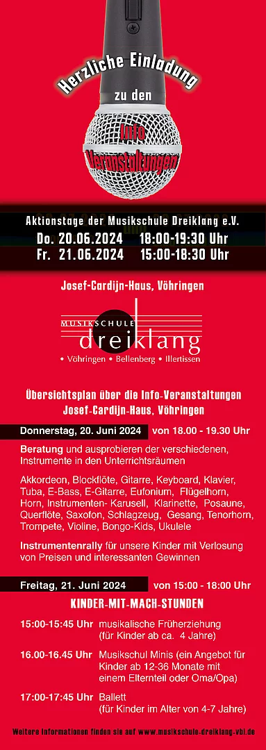 Über Ihr Kommen und Interesse würden sich die Lehrkräfte der Musikschule Dreiklang e.V. sehr freuen.