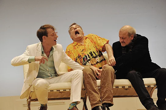 Eine konfliktreiche Komödie der Meisterin für ausgefeilte, witzige Dialoge, der Autorin Yasmina Reza, mit drei herausragenden Prominenten: Leonard Lansink, Luc Feit und Heinrich Schafmeister.
