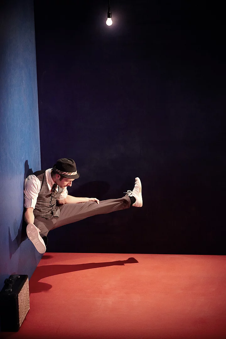 Ein Mann, ein Hut, ein Koffer, ein Stück Kreide – mehr gibt es nicht zu sehen. Sensationell ist nicht das Was, sondern das Wie dieser Show: Denn LEO bewegt sich durch den Raum als gäbe es keine Schwerkraft. Die Wahrnehmung der Zuschauer gerät völlig durcheinander und niemand weiß, in welchem Raum sich LEO gerade befindet, wo oben und unten ist. So wird die Vorstellungskraft jedes einzelnen zur eigentlichen Bühne. Für das großartige, ganz besondere Spektakel von LEO fielen die Preise wie vom Himmel, so. z.B. beim internationalen Edinburgh Fringe Festival und beim Grand Prix at Kimnické Gagy Festival. Foto: Andy Philipson