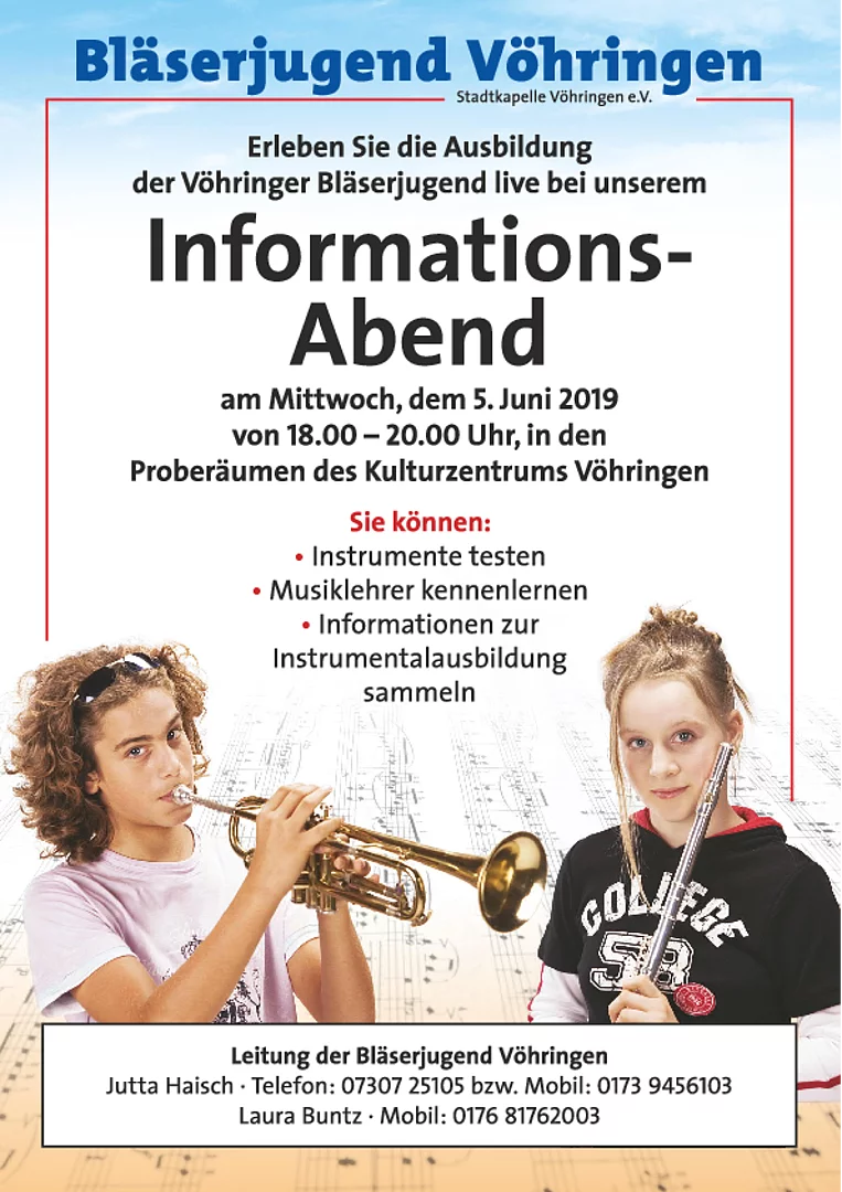 Mach mit - sei dabei! Infoabend der Bläserjugend der Stadtkapelle Vöhringen für musikinteressierte Kinder und Jugendliche