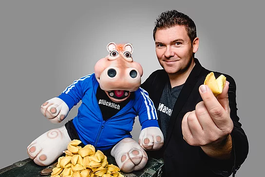 Ist ein eingeschweißter Keks aus leeren Kalorien, gefüllt mit einem Zettel samt sinnlosem Spruch echt der Weg, über den das Glück mit uns kommunizieren möchte? Und wenn ja, wäre das gut oder schlecht? Und überhaupt, was ist das, Glück? Braucht man das? Wo gibt es das? Wie kommt man da ran? Und bleibt das dann? Und wenn nicht? Haben das dann andere? Oder, ist Glück gar der Sinn des Lebens? Fragen über Fragen, auf die Amanda dringend eine Antwort sucht. Das tut sie auf ihre unnachahmliche Art und Weise im neuen Programm „Glückskeks“! Vielleicht ist Amanda ja selbst so ein Glückskeks, schließlich weiß man auch bei dem süßen Gebäck nicht, was gleich dabei raus kommt. Eines steht jedoch fest - Amanda hat ein besonderes Ziel: Glücklich machen, glücklich sein. Ob Sebastian ihr dabei eine große Hilfe ist, stellt sie einmal mehr in Frage. Aber das wird sie live und ohne ein Blatt vor den Mund zu nehmen auf der Bühne klären. Hierbei wird sich zeigen, dass die smarte Nilpferddame reifer geworden ist. Ganz gleich ob sie nun den Führerschein machen möchte oder ihr eigenes Handy bekommt, Amanda steht mit beiden Beinen voll im Leben. Bleiben nur noch die zwei großen Rätsel, warum Amanda demnächst wohl sehr viel in England unterwegs sein wird und wer der „Glückskeks des Abends“ ist?! Neben Amanda wird es auch zwei neue Figuren auf der Bühne geben, die jede Menge Glücksmomente, Überraschungen und ein musikalisches Highlight versprechen. Spontane Interaktionen werden die Lachmuskeln strapazieren und jedes Tour-Gastspiel zu einem individuellen Erlebnis machen. Eines werden die Zuschauer an diesem Abend allemal sein: Glücklich! Ob es Sebastian am Ende auch ist, das wird alleine Amanda entscheiden. Auch das bereits dritte Solo-Programm des Würzburger Duos ist wieder für die ganze Familie und alle Altersklassen geeignet, vom kleinen Amanda-Fan bis hin zum großen Comedy-Liebhaber. Foto: Alexey Testov