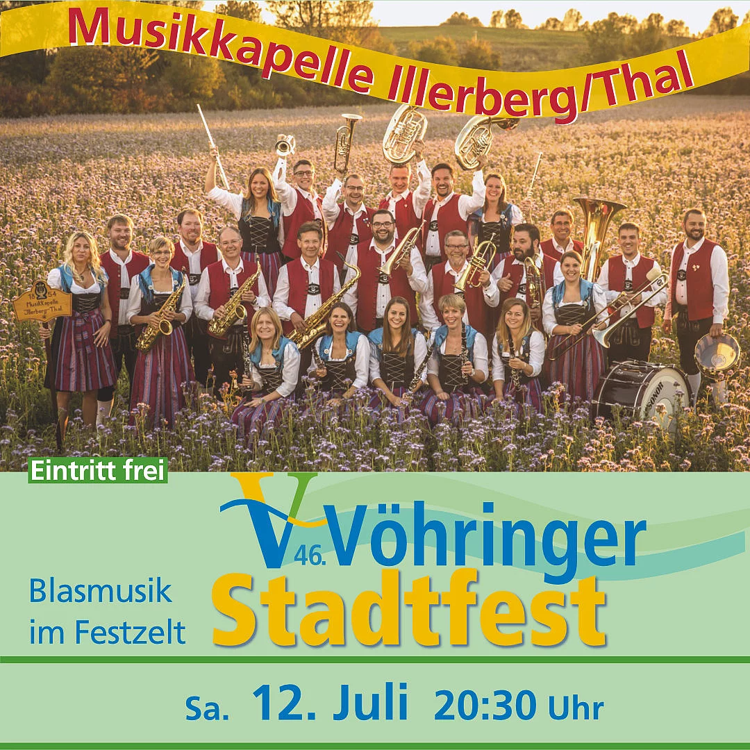 Beginn 17:00 Uhr mit der Sommertourband der Stadtkapelle Vöhringen e.V., bei trockenem Wetter auf der Bühne im Freien vor der St. Michael Kirche. Ab 20:30 Uhr spielt die Musikkapelle Illerberg/Thal e.V. Blasmusik mit Schwung im Festzelt.