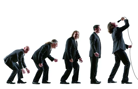 Evolution ist Veränderung, Weiterentwicklung, Variantenreichtum und Selektion. Gegenüber den letzten Programmen von TERZINFARKT erfolgt quasi ein Zeitsprung in die Gegenwart der Rock- und Popmusik. Bruno Mars, Max Mutzke, the Boss Hoss, Robbie Williams, die Toten Hosen, Rammstein und viele andere mehr liefern die Vorlagen für atemberaubende a-cappella-Interpretationen auf höchstem technischen Niveau.