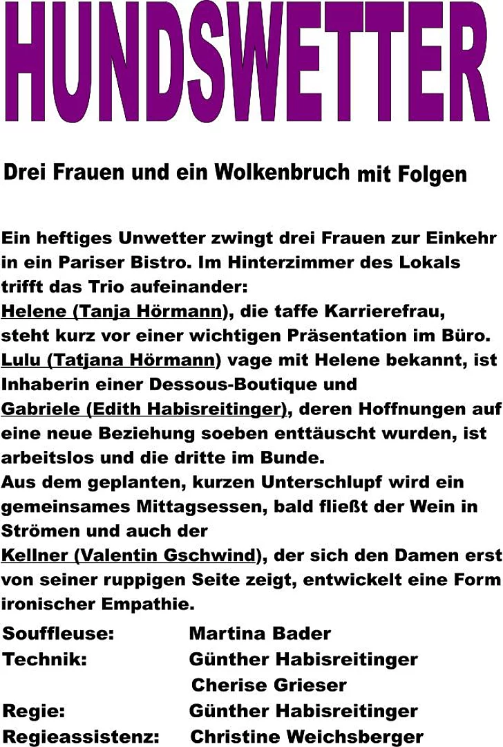 Theaterstück "Hundswetter" von Brigitte Buc