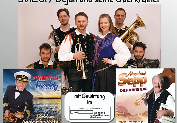 Humoristischer Unterhaltungsnachmittag mit "Alpenland Sepp" und "SVIZCI / Dejan und seine Oberkrainer" sowie "Captain Freddy" mit seinem Saxophon.