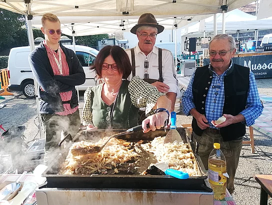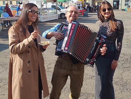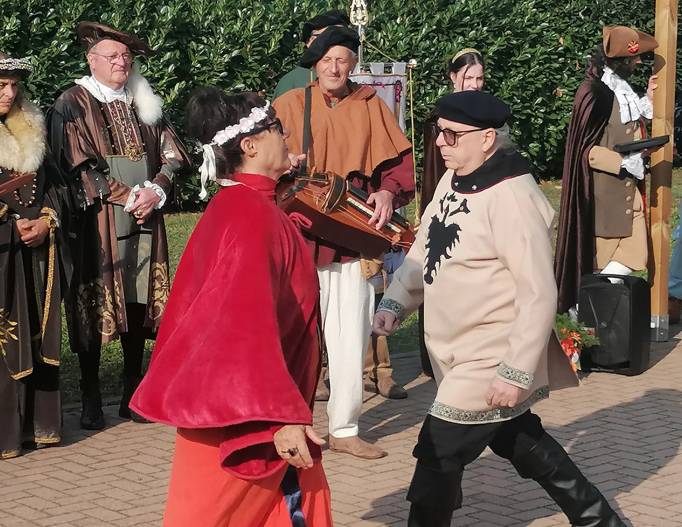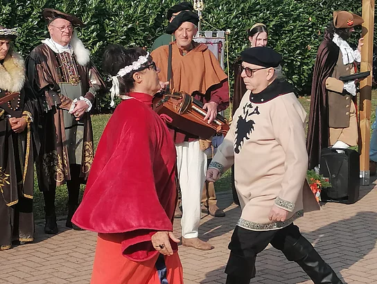 Der dritte Tag markierte den Höhepunkt des 3-V-Treffens mit der Anbringung der neuen Partnerschafts-Gedenktafel im „Garten der Partnerstädte“ in der Viale Roma. Eine Tanzaufführung in historischen Gewändern und mit historischem Musikinstrument beschloss diesen Teil, bevor es auf dem Straßenfest weiter ging, auf dem die Partnerstädte ihre regionalen Spezialitäten anboten.