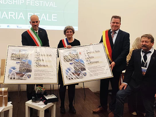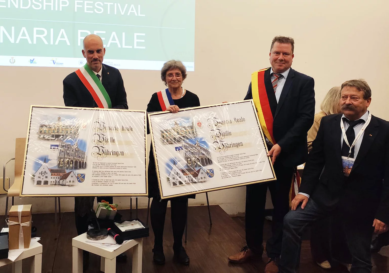 Eingebettet in ein ausführliches Programm mit Grußworten aller Bürgermeister, Informationen und sogar Kurzvideos von allen Partnerstädten betonte der Erste Bürgermeister von Venaria Reale, Fabio Giulivi, die Kraft der Verbindung der Städte. Diese überwinde die Grenzen, Sprachen und Entfernungen und schafft authentische Verbindungen zwischen Jugendlichen und Gemeinschaften verschiedener Länder.