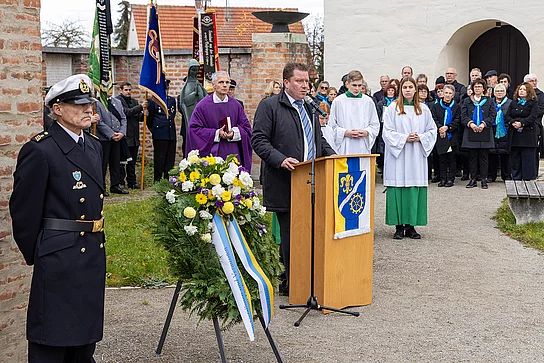 In seiner Ansprache erinnerte Bürgermeister Michael Neher daran, dass der Volkstrauertag nicht nur dem Gedenken an die Gefallenen vergangener Kriege gilt, sondern auch ein Tag der Mahnung und Verantwortung ist. Der Bürgermeister betonte, dass Frieden keine Selbstverständlichkeit, sondern tägliche Aufgabe und Verpflichtung sei. Angesichts der gegenwärtigen Kriege in Europa und anderen Teilen der Welt zeige sich, wie kostbar und zugleich verletzlich der Frieden sei.