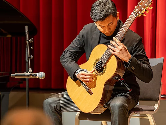 Musikalisch umrahmt wurde der Neujahrsempfang auch 2026 wieder durch die Musikschule Dreiklang – mit Elias Perkins am Flügel und Adam Dipo Pangrekso an der Gitarre.