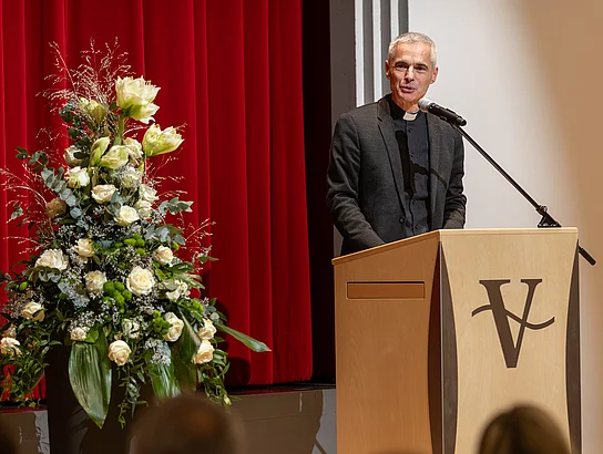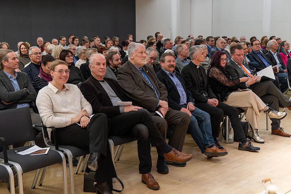 Vöhringens katholischer Dekan Martin Straub begann seine Neujahrsansprache mit Segenswünschen zum Jahr 2026 und dem Hinweis, dass persönliches Wohlergehen uns alle existenziell betrifft, doch Gottes Segen und Hoffnung nicht einfach nur eigene Wünsche seien. Zentrales Thema seiner Rede war die Definition des Begriffs „Hoffnung“ im Wandel der Zeit, aber auch aus unterschiedlichster religiöser Sichtweise. Er schilderte, dass die alten Griechen in der Hoffnung nur eine Illusion sahen, die zur Jagd nach dem Unerreichbaren antreibt. Dementsprechend sparsam wurde der Begriff in der heidnischen Antike verwendet. Heutzutage sei dies anders. Wir verwenden den Begriff recht häufig, allerdings eher als Synonym für das Wort „wünschen“. Das Problem sei hierbei, dass die Enttäuschung über unerfüllte Wünsche schnell unser inneres Gleichgewicht bricht und Entmutigung generiert. Heilmittel sei nicht das Wünschen, sondern echte Hoffnung. Im Gegensatz zum Buddhismus, der alles Wünschen bzw. Hoffen auslöschen will, um menschlichem Leid zu entgehen und ins Nirvana zu kommen, sei der christliche Ansatz vollkommen anders: Wünsche zu verleugnen gelingt nicht wirklich. Die Sehnsucht des Menschen nach Glück wurde uns von Gott ins Herz gelegt. Es ist die Sehnsucht nach Erlösung und Rückkehr zum Schöpfer. Laut Dekan Straub sei Hoffnung nicht einfach Hoffnung – man müsse wissen, worauf man hofft. Und die Hoffnung der Christen habe einen Namen: Jesus Christus. Ihr Grund: die Auferstehung. Hoffnung im christlichen Sinne heißt: Gott ist treu – selbst wenn vieles zusammenbricht. Somit sei Hoffnung eine Kraft, die mitten in den Herausforderungen Bestand habe.
