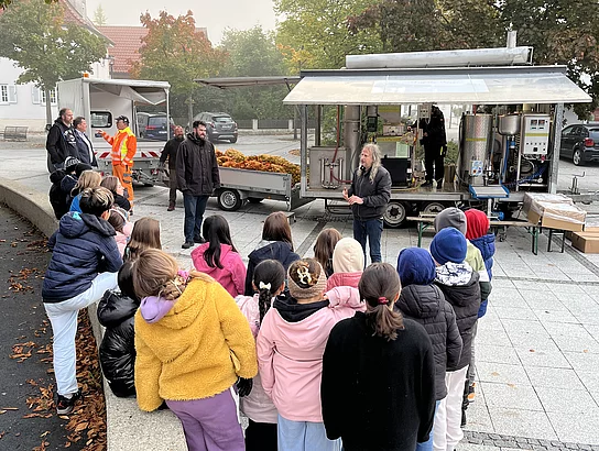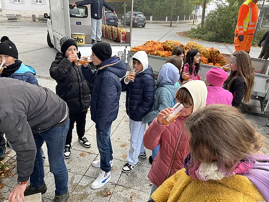 In der ersten Oktoberwoche sammelten Schüler der Uli-Wieland-Grundschule und der Grundschule Vöhringen Nord Äpfel auf einer Streuobstwiese. Mit vollem Einsatz, Spaß und Engagement füllten die Kinder Korb um Korb. Die gesammelten Äpfel wurden anschließend mit einer mobilen Saftpresse zu leckerem Apfelsaft verarbeitet. Die rund 500 Liter Apfelsaft wurden den beteiligten Schulen dann kostenlos zur Verfügung gestellt.