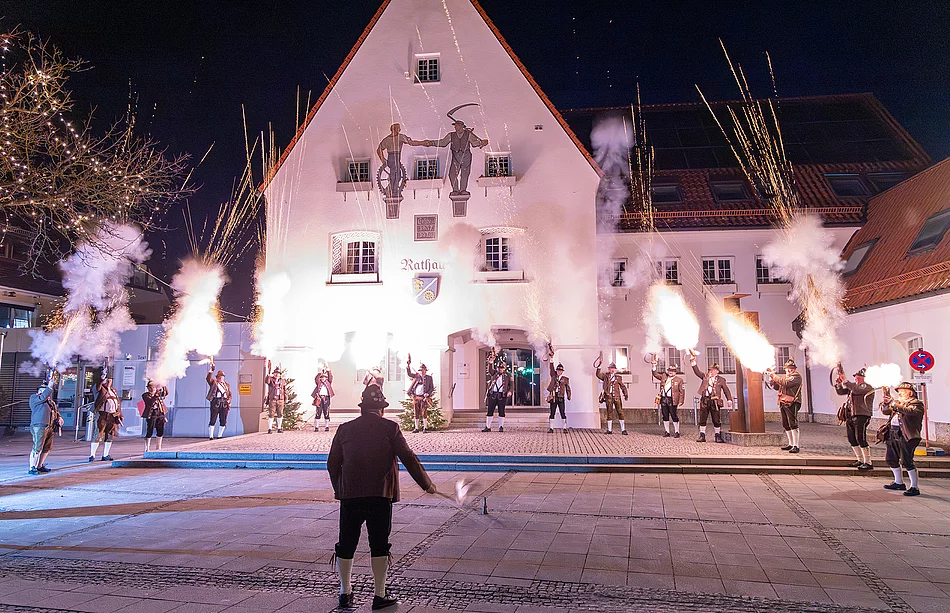 Zum 22. Mal in Folge ließ am 31. Dezember des vergangenen Jahres gegen 18:00 Uhr die Böllergruppe des Zimmerstutzen-Schützenvereins Illerberg/Thal e.V. Vöhringens Innenstadt erzittern. Das akustisch beeindruckende Spektakel, welches zwei Stunden zuvor bereits die Bewohner Illerbergs zu spüren bekamen, faszinierte abermals aufs Neue Jung und Alt.