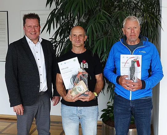 Bürgermeister Michael Neher ließ es sich nicht nehmen, den Gewinnern persönlich zu gratulieren. Er bedankte sich für die aktive Teilnahme und verkündete bei der Siegerehrung die jeweils von den Gewinnern gefahrenen Kilometer und eingesparten Mengen an CO2.