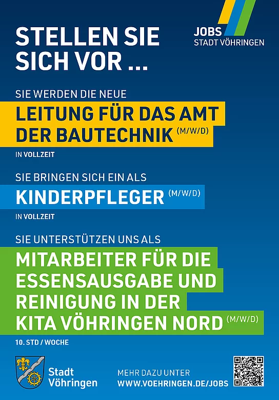 Leitung f.d. Amt d. Bautechnik; Kinderpfleger; Mitarbeiter Essensausgabe u. Reinigung KiTa Vöhringen Nord (m/w/d)