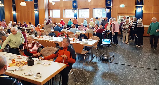 Rund 90 Seniorinnen und Senioren fanden sich am ersten Donnerstag im November zum traditionellen Seniorenfrühstück ein. Zwischen herbstlich geschmückten Tischen wurden Kranzbrot, Nusszopf und Mohnzopf gereicht, ergänzt durch Kuchenspenden, die großen Anklang fanden.