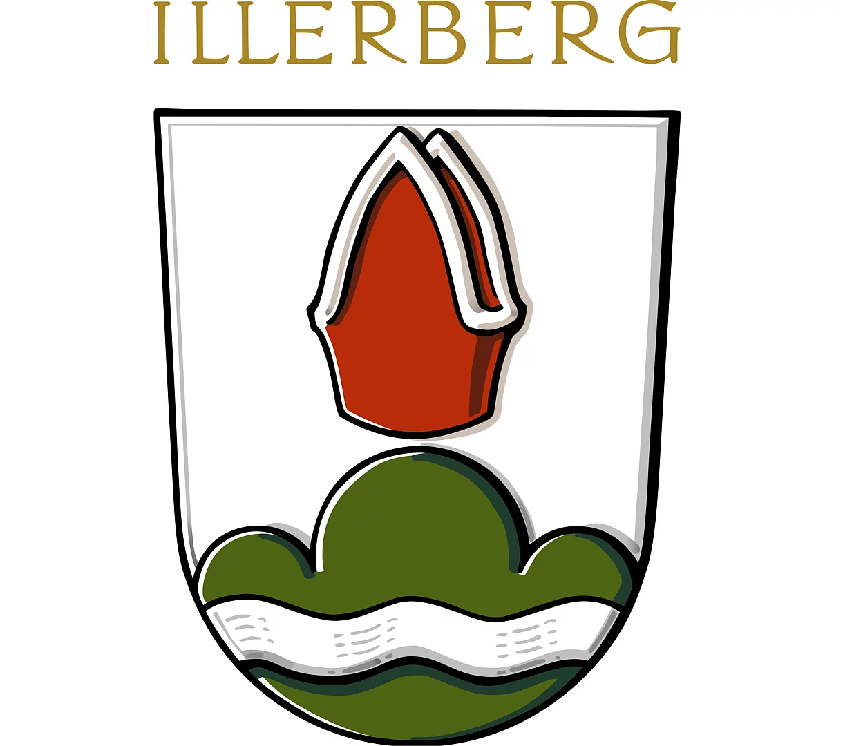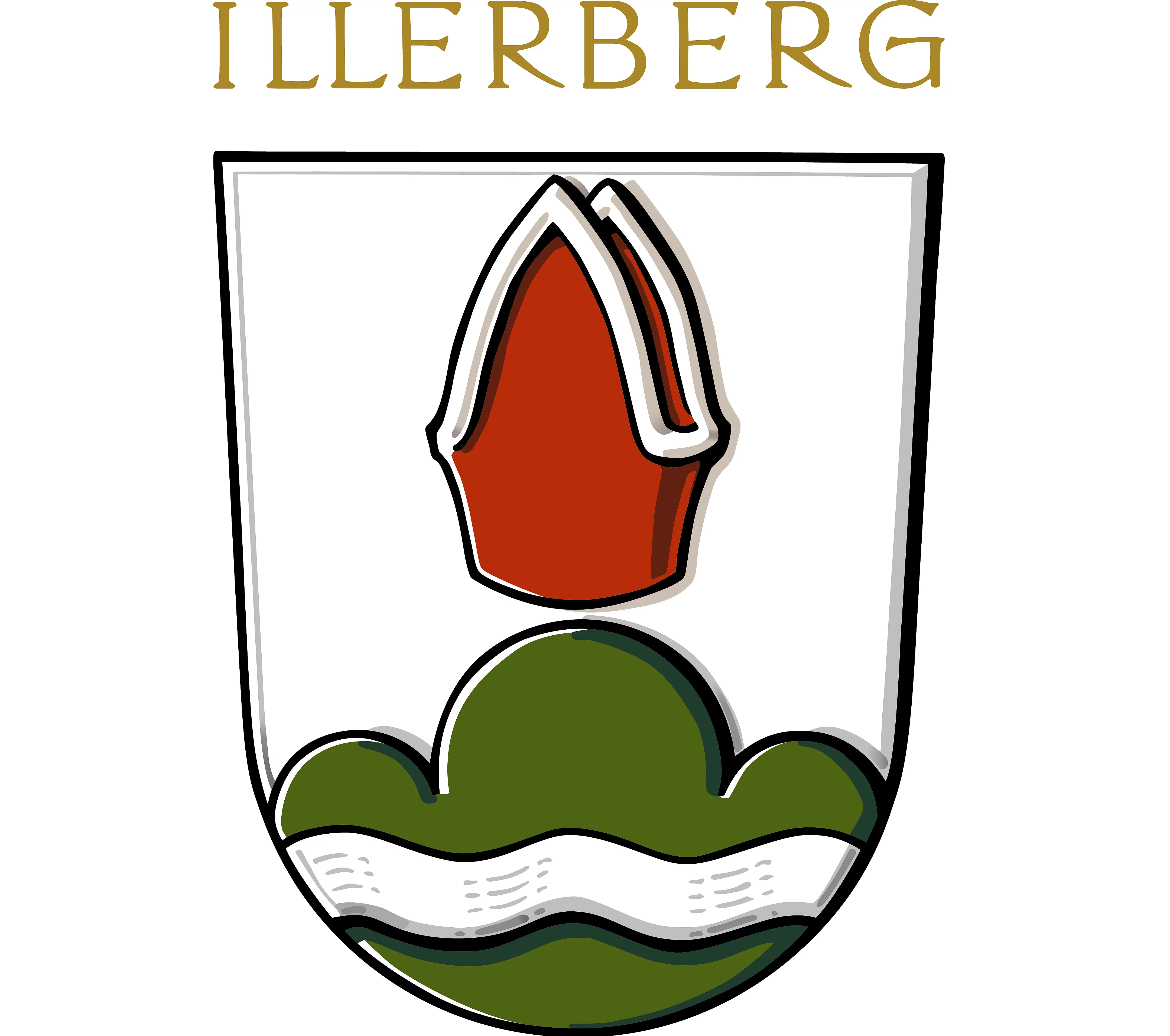 Das Ortswappen zeigt einen Dreiberg und einen Wellenbalken als Flusssymbol als redendes Wappen. Dreiberg wie auch der Wellenbalken spielen auf die Deutung des Ortsnamens Illerberg an. Die heraldisch stilisierte Mitra entstammt dem Wappen der Grafen von Kirchberg, zu deren Herrschaftsbereich Illerberg bis zu dessen Verkauf an Herzog Georg den Reichen von Bayern-Landshut im Jahr 1481 gehörte. Als bischöfliches Abzeichen deutet es außerdem auf den Kirchenpatron, den Heiligen Martin, und erinnert ferner daran, dass die Pfarrkirche als sogenannte Quartkirche in einem besonderen Abgabenverhältnis zum Bischof von Augsburg stand.