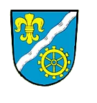„In Blau ein nach links gerichteter silberner Wellenschrägbalken, oben eine goldene heraldische Lilie, unten ein goldenes Mühlrad.“ Angenommen durch Entschließung der Regierung von Schwaben am 28. März 1977.
